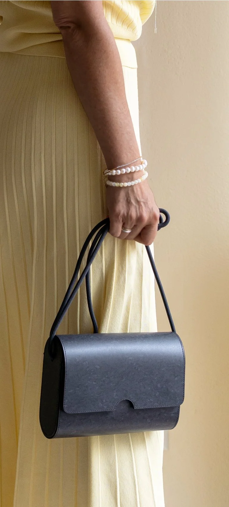 Die Handtasche aus Bodenbelagsmaterial vereint außergewöhnliches Design mit innovativer Materialwahl. Inspiriert von der texturalen Vielfalt moderner Bodenbeläge, besticht sie durch eine robuste, langlebige Oberfläche und einzigartige ästhetische Tiefe.
